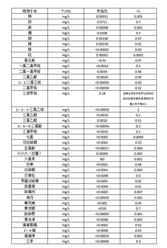 出廠水106項公示(半年度公示2020.12.28) 時間:2020-12-28 分類:水質(zhì)公示 上一篇: 出廠水每周公示(2020.12.22) 下一篇: 出廠水每周公示(2020.12.29) 相關(guān)文章 2025.9.23管網(wǎng)水(月全) 2025.9.23出廠水、管網(wǎng)末梢水常規(guī)42項指標(月度公示) 2025.9.4管網(wǎng)末梢、管網(wǎng)水(半月) 出廠水每周公示2025.10.13-2025.10.19 出廠水每周公示2025.10.6-2025.10.12 出廠水每周公示2025.9.29-2025.10.5 出廠水每周公示2025.9.22-2025.9.28 出廠水每周公示2025.9.15-2025.9.21