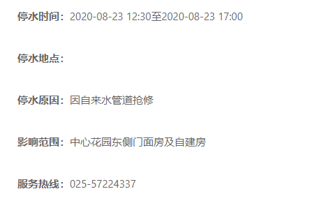 緊急停水通知(2020-08-23 12:30至2020-08-23 17:00)