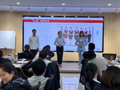不學(xué)禮,無以立。楊老師從服務(wù)人員角色定位、服務(wù)意識(shí)和心態(tài)引出服務(wù)與禮儀形象的重要性,采用課堂理論教學(xué)與標(biāo)準(zhǔn)示范相結(jié)合的方式,根據(jù)窗口服務(wù)工作的職業(yè)特點(diǎn),邀請(qǐng)示范員進(jìn)行標(biāo)準(zhǔn)的禮儀展示,從細(xì)微處糾正日常容易被忽視的禮儀細(xì)節(jié),明確一線人員角色定位,提升責(zé)任意識(shí),樹立“為用戶提供優(yōu)質(zhì)服務(wù)是自己的本職工作”的基本理念。