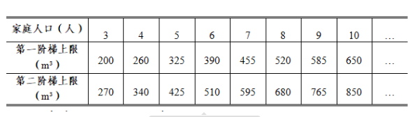 以家庭人口3人為基數,第一、第二、第三階梯年用水量上限為每戶每年200(含)立方米以下、200—270(含)立方米、270立方米以上。人口為4(含)人以上的用戶第一、第二階梯年用水量上限分別為按每人每年65立方米、85立方米確定。
