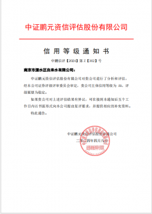 近日,經國內權威信用評級機構中證鵬元資信評估股份有限公司評估認定南京市溧水區自來水有限公司獲評AA主體信用等級,評級展望為“穩定”。這是繼集團獲評AA+主體信用評級后又一喜訊。